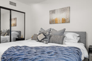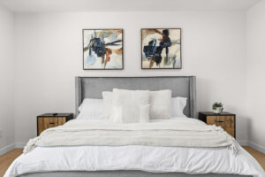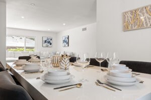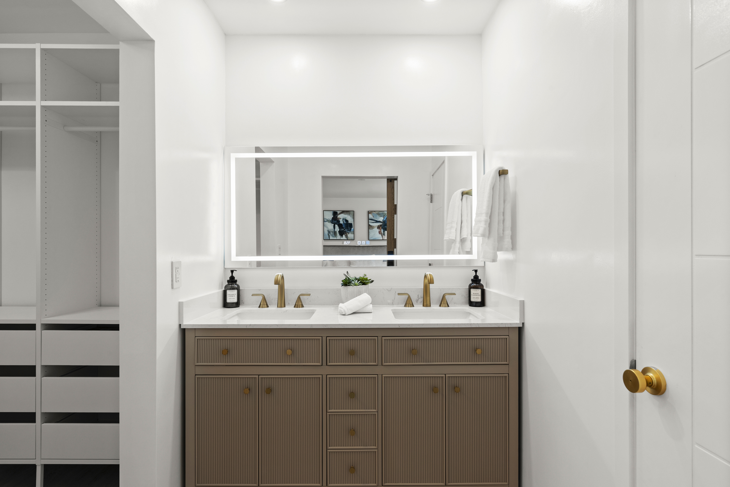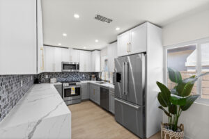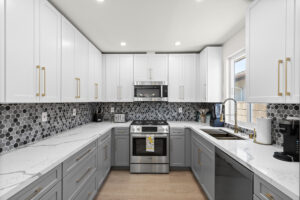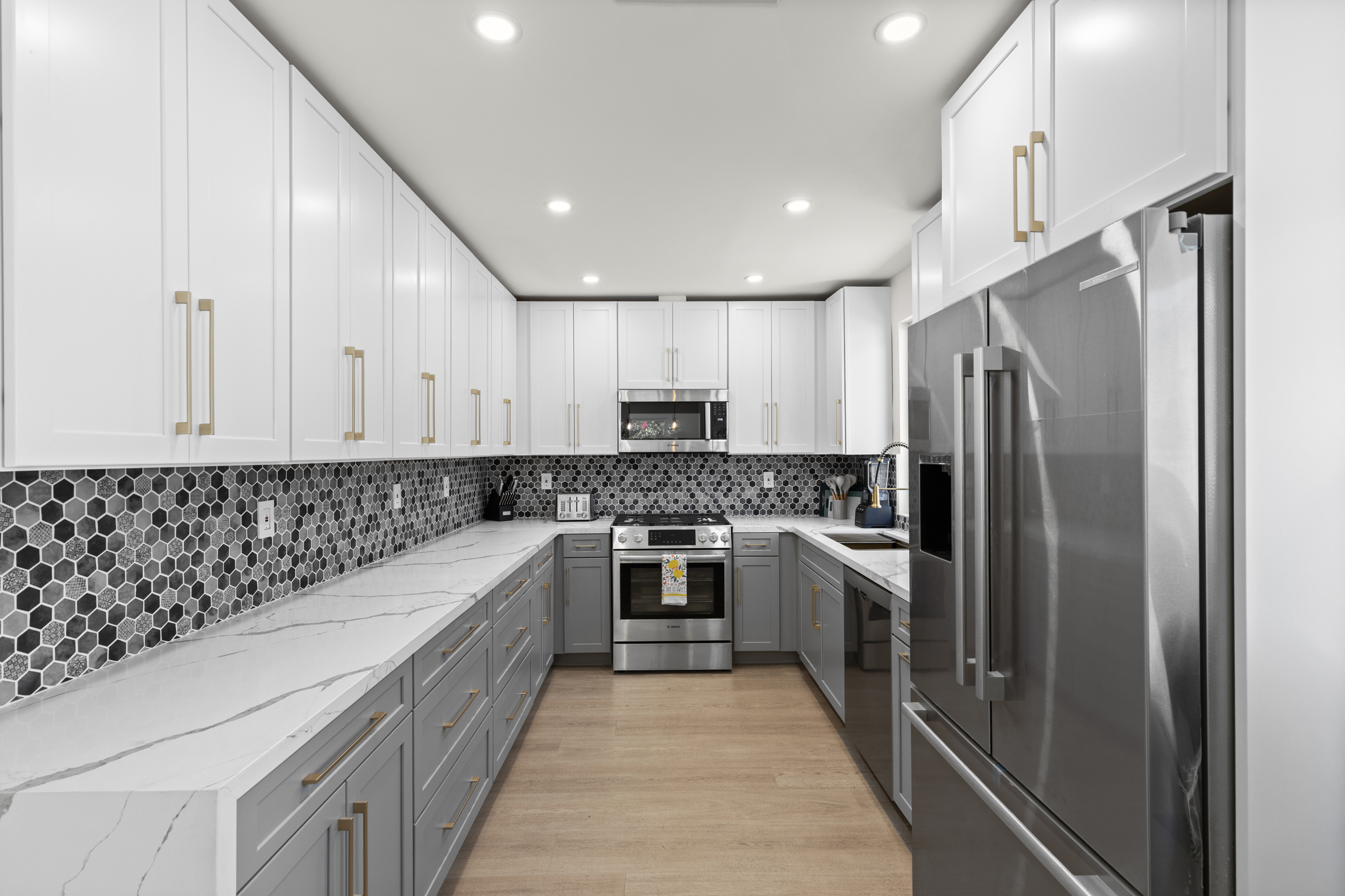 The modern kitchen is a chef’s dream, complete with sleek quartz countertops, premium stainless steel appliances, and ample cabinetry. Whether you’re hosting guests or enjoying a quiet night in, the layout flows effortlessly into the dining and living spaces—ideal for everyday living and entertaining alike.
