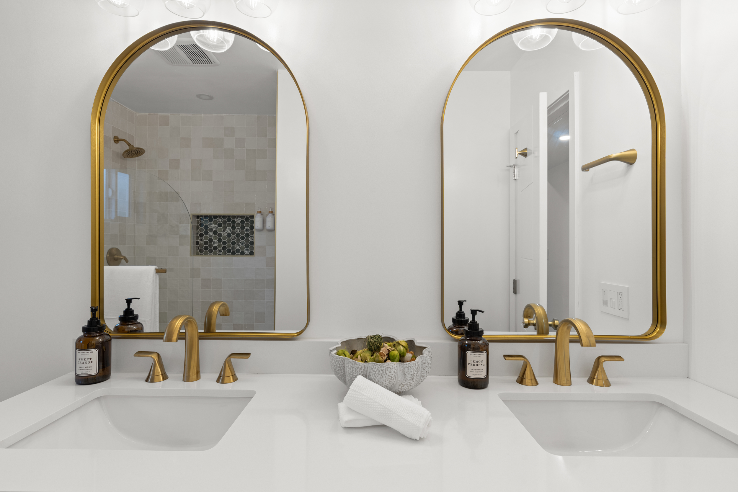 All five bedrooms are generously sized, including a peaceful primary suite with a fully updated en-suite bath. The additional bathrooms are beautifully remodeled with contemporary finishes, ensuring comfort and convenience for the whole family.